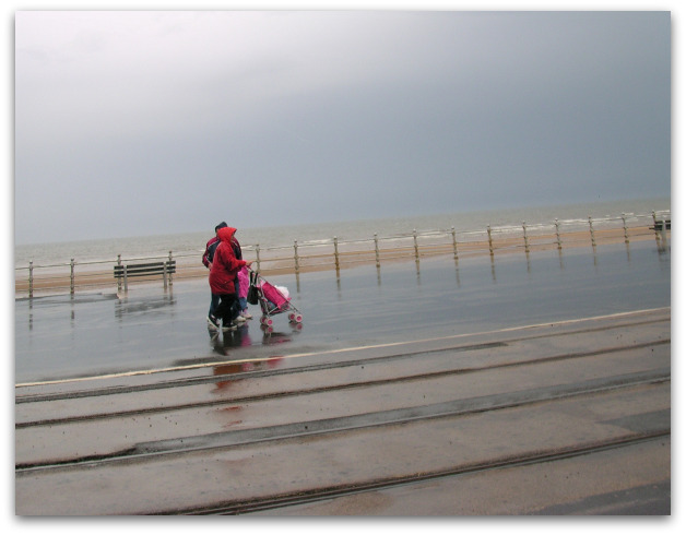 Relatief dieptepunt was ons verblijf in Blackpool. Gedurende de dagen dat we daar waren, hebben we het alleen maar cats & dogs zien regenen. Maar dat leverde op de bekende boulevard – vlakbij de fake-Eiffeltoren – wel dit fraaie plaatje op.