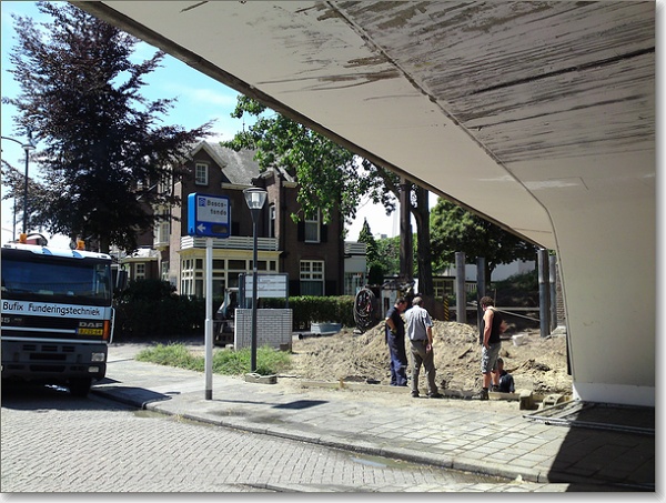 De Traverse is maar een saai betonnen viaduct. Daarom wordt het gepimpt. Wat nieuwe stoeptegels, een paar bomen, andere lantaarnpalen. En als toefje slagtroom op de taart wordt het voorzien van twee windturbines.