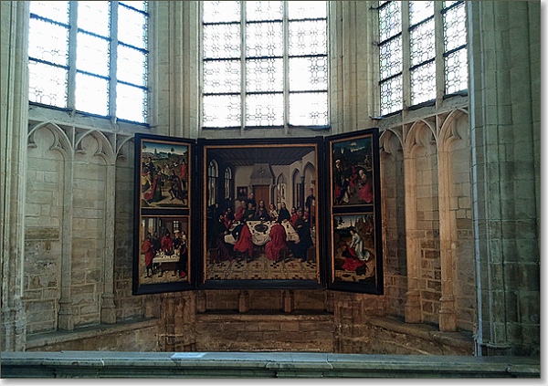 Een van de pronkstukken van de stad is de St.-Pieter, een kerk die enkele laat-middeleeuwse schilderijen herbergt. Waarvan twee van de hand van Dirk Bouts. De ene, de meest indrukwekkende, heb ik snel even op de foto gezet – ondanks dat dat niet mocht. Het gaat om het Laatste Avondmaal, een zeer indrukwekkend schilderij, ook al is dat op deze snapshot niet zo goed te zien.