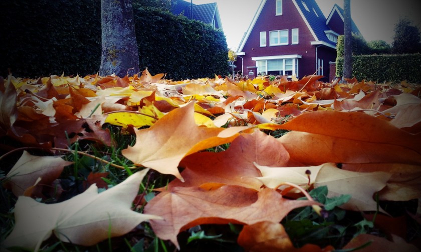 Geen van de vier seizoenen is zo fotogeniek als de herfst. En nagenoeg heel onze tuin en zijtuin liggen vol met prachtig verkleurde herfstbladeren. Dan ontkom je er niet aan wat plaatjes te maken als je de hele dag met een als telefoon vermomde camera rondloopt.