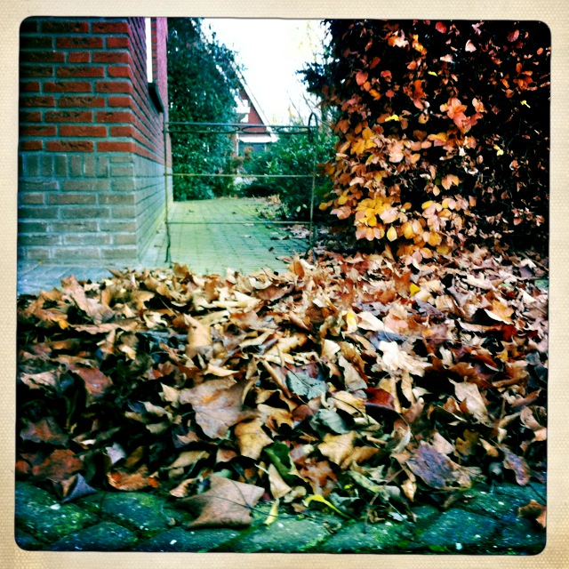 Afgelopen week uren staat te vegen en bij elkaar staan te harken: alle bladeren die er hier in het najaar bij bosjes uit bomen, struiken en heggen komen vallen.