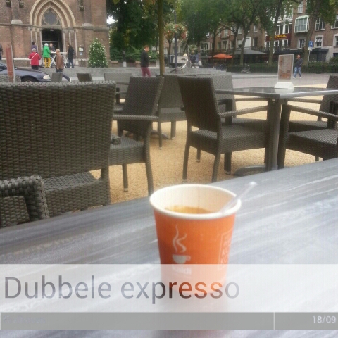 Die bon leverde me vannmiddag een eerste dubbele expresso op. En daar heb ik in de stilte van het Catharinaplein eens lekker stil van zitten genieten.