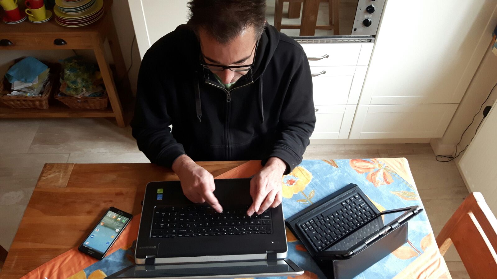 Toch wel lekker werken op zo’n breed beeldscherm. Zeker als er ook nog eens zo’n leuk persoonlijk verhaal op die pagina staat, van collega Jelle, over het World Eye Contact Experiment in de Piazza in Eindhoven, georganiseerd door Aïda Spaninks en gefotografeerd door Irene Wouters. Vrijdag in het ED.