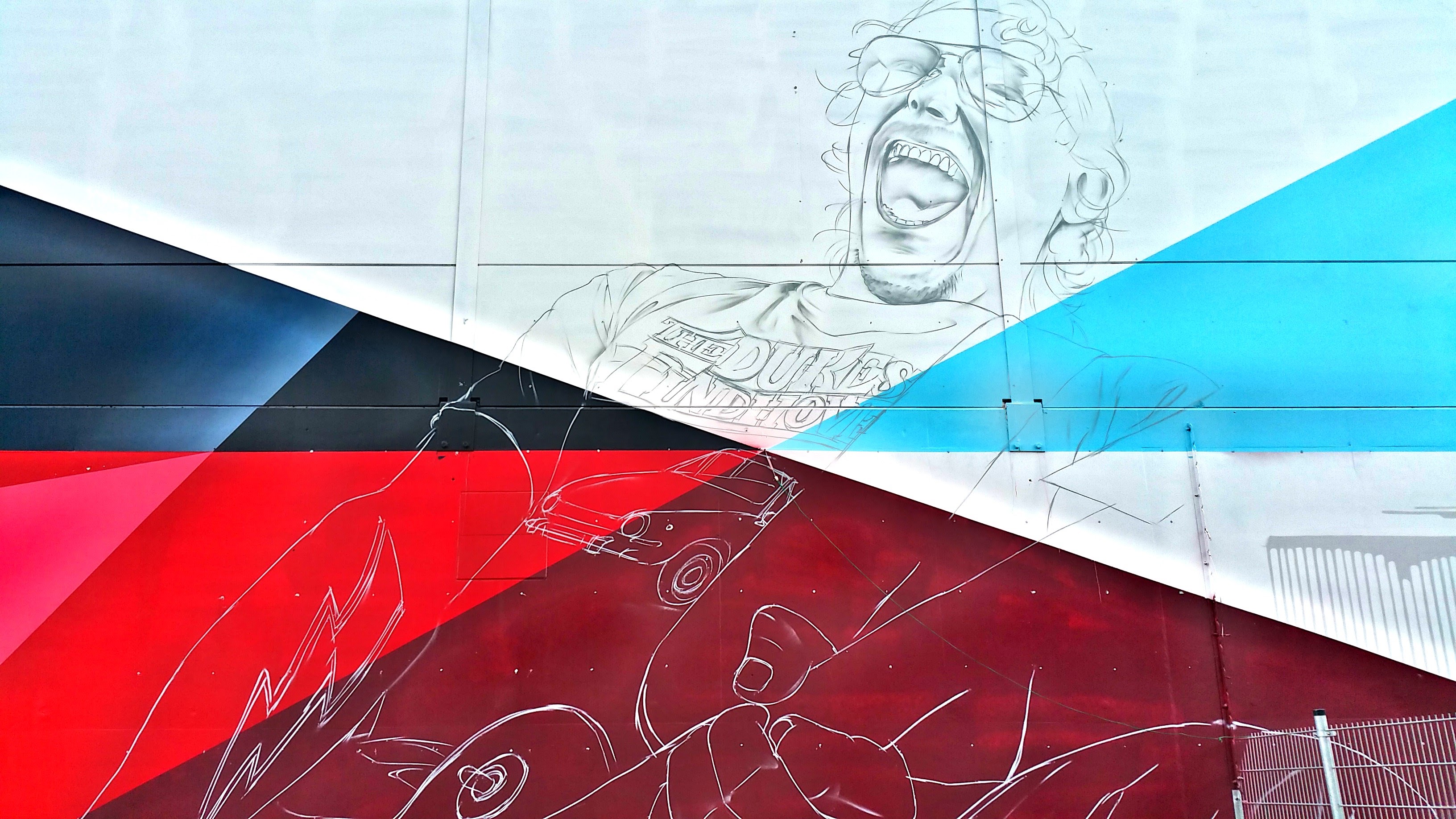 Nou, die mensen zoeken zelf maar even op wie er afgebeeld wordt op deze levensgrote graffiti tussen Klokgebouw en spoor op Strijp-S, vlakbij Lemmy van Motorhead.
