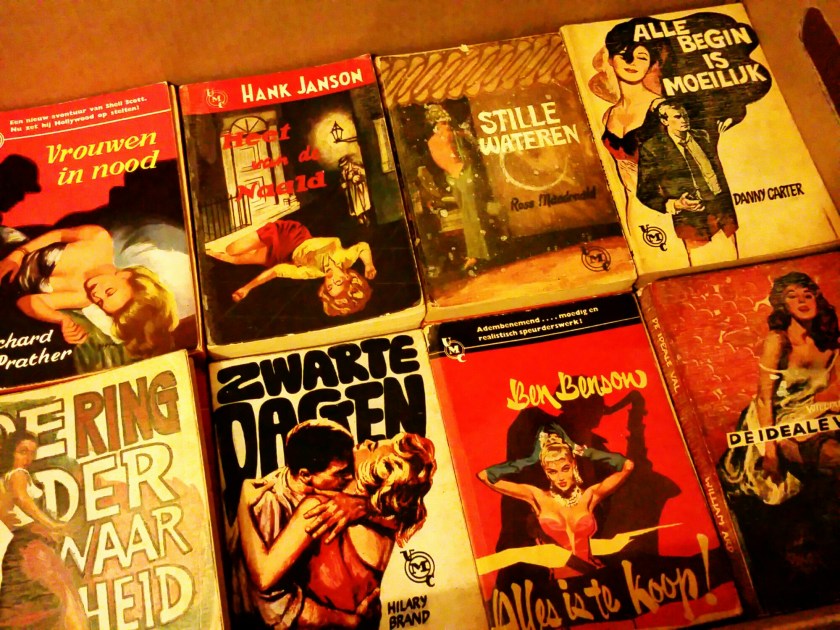 Die zin komt uit een van de boeken die zitten in een doos die ik op zolder tegenkwam. Een doos vol met dit soort bad detectives, vertalingen van Amerikaans spul uit de jaren zestig.