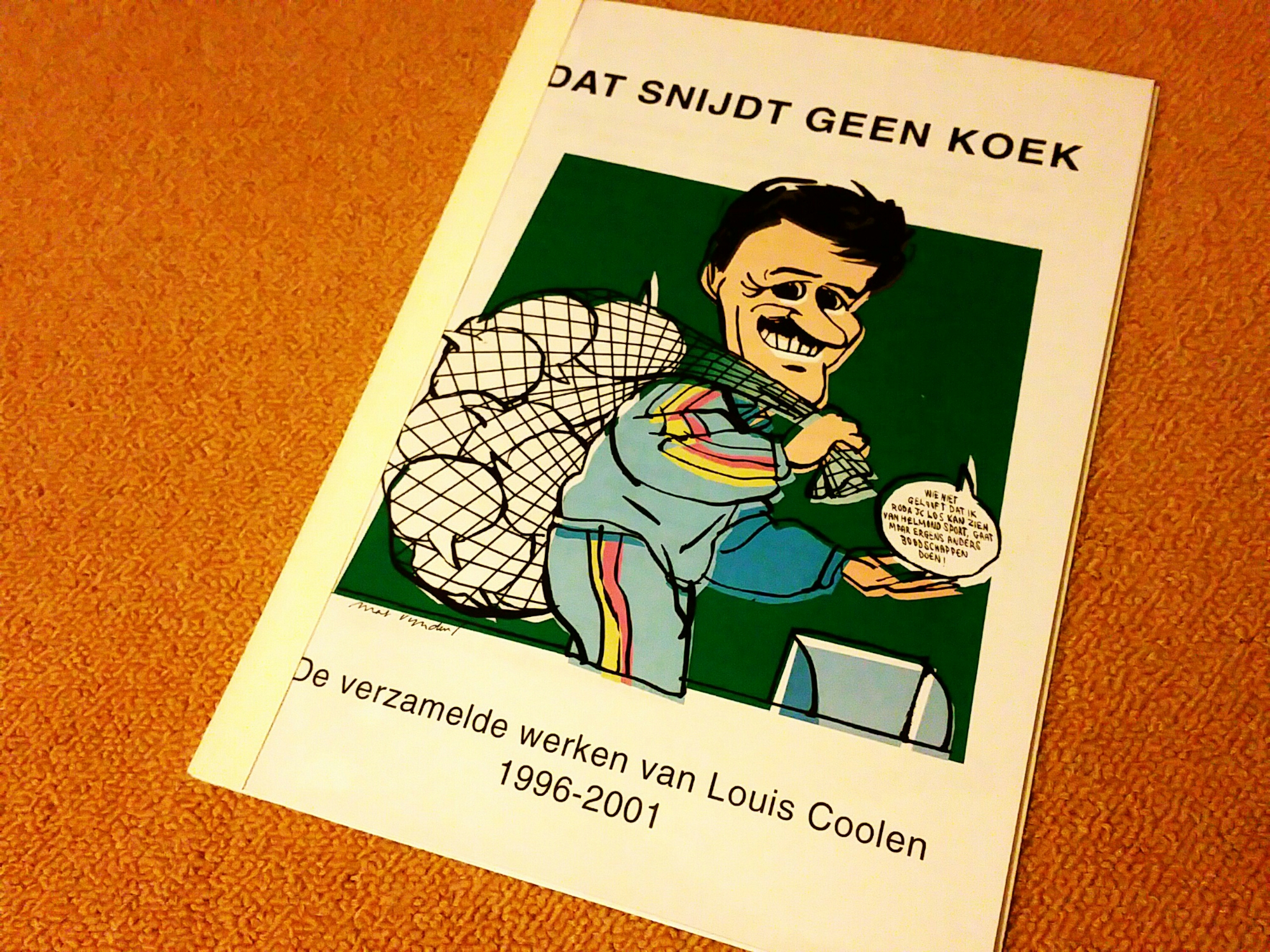 Er is toen maar een handjevol exemplaren gedrukt van dit uiterst amusante werkje vol met minder of meer geslaagde one-liners en al dan niet verhaspelde beeldspraken. Zoals die in de titel: Dat snijdt geen koek