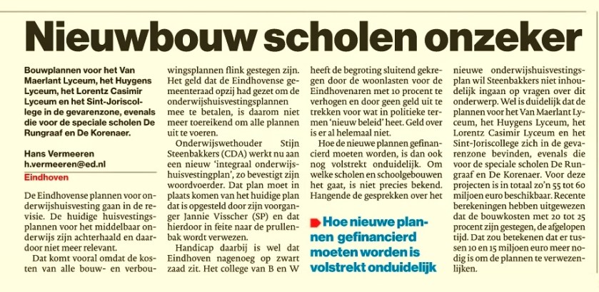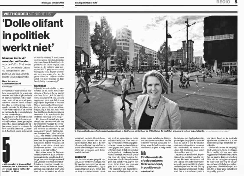 Vandaag in de krant de weerslag van een gesprek dat ik had met de Eindhovense VVD-wethouder Monique List. Ook hier te lezen trouwens.