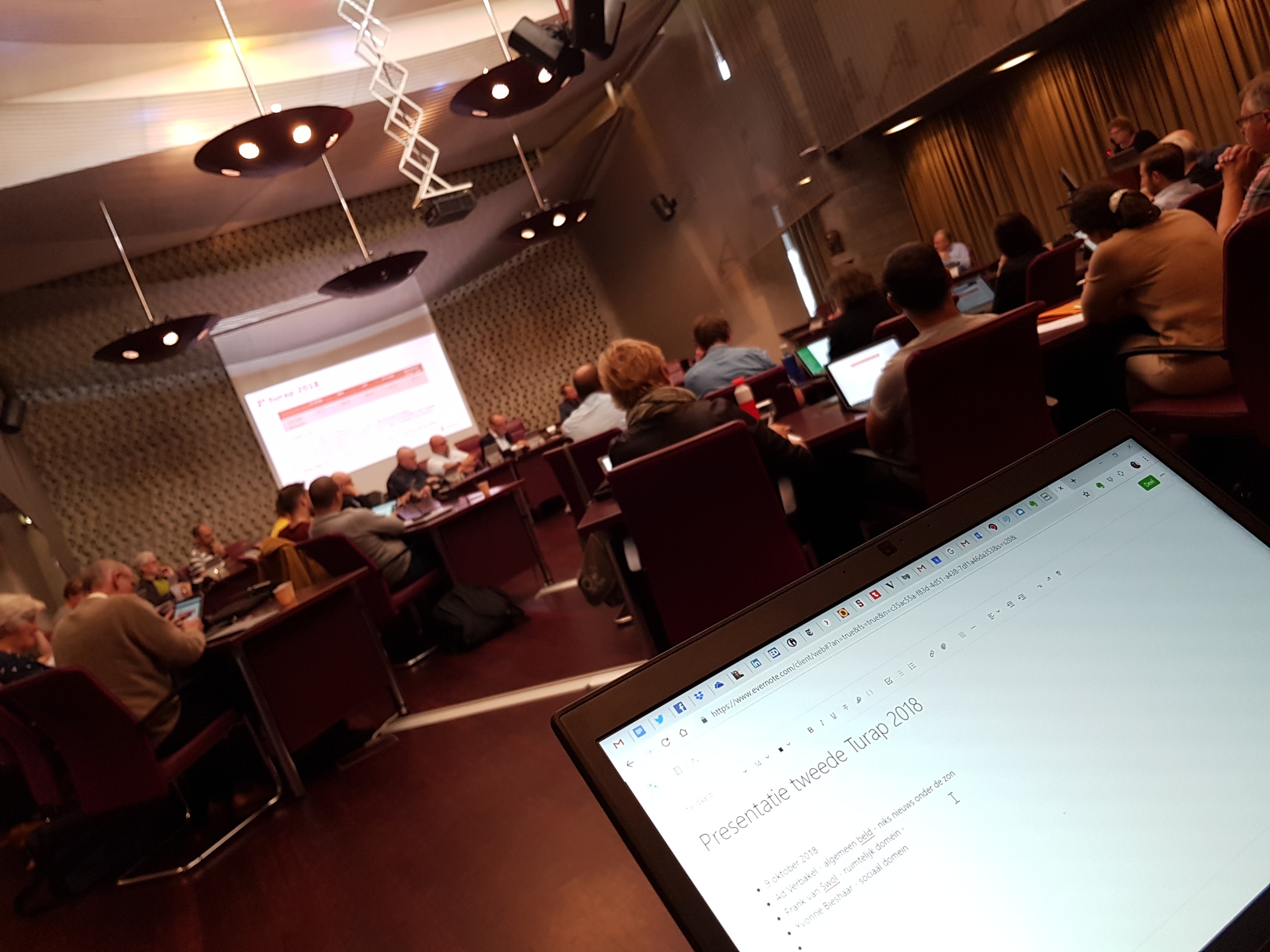 Hoe dat er uit ziet, journalistiek werk? Zitten, luisteren en wachten. Zoals hier in de raadszaal van Eindhoven. Samen met mijn collega van Studio 040 deze keer, rechts. Op een foto van Siem Nozza, die achter me zat.