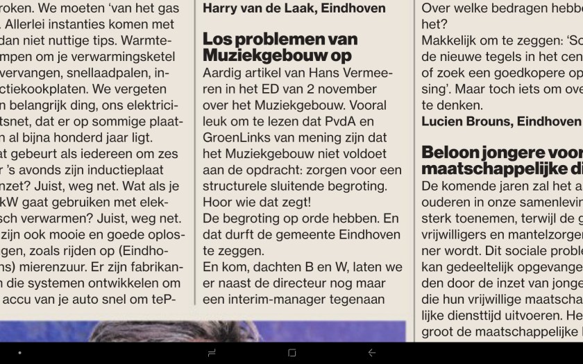 Deze brief vandaag in de krant, over het Eindhovense Muziekgebouw, vormt een positieve uitzondering op die regel. Die wil ik u niet onthouden, dat begrijpt u natuurlijk wel.