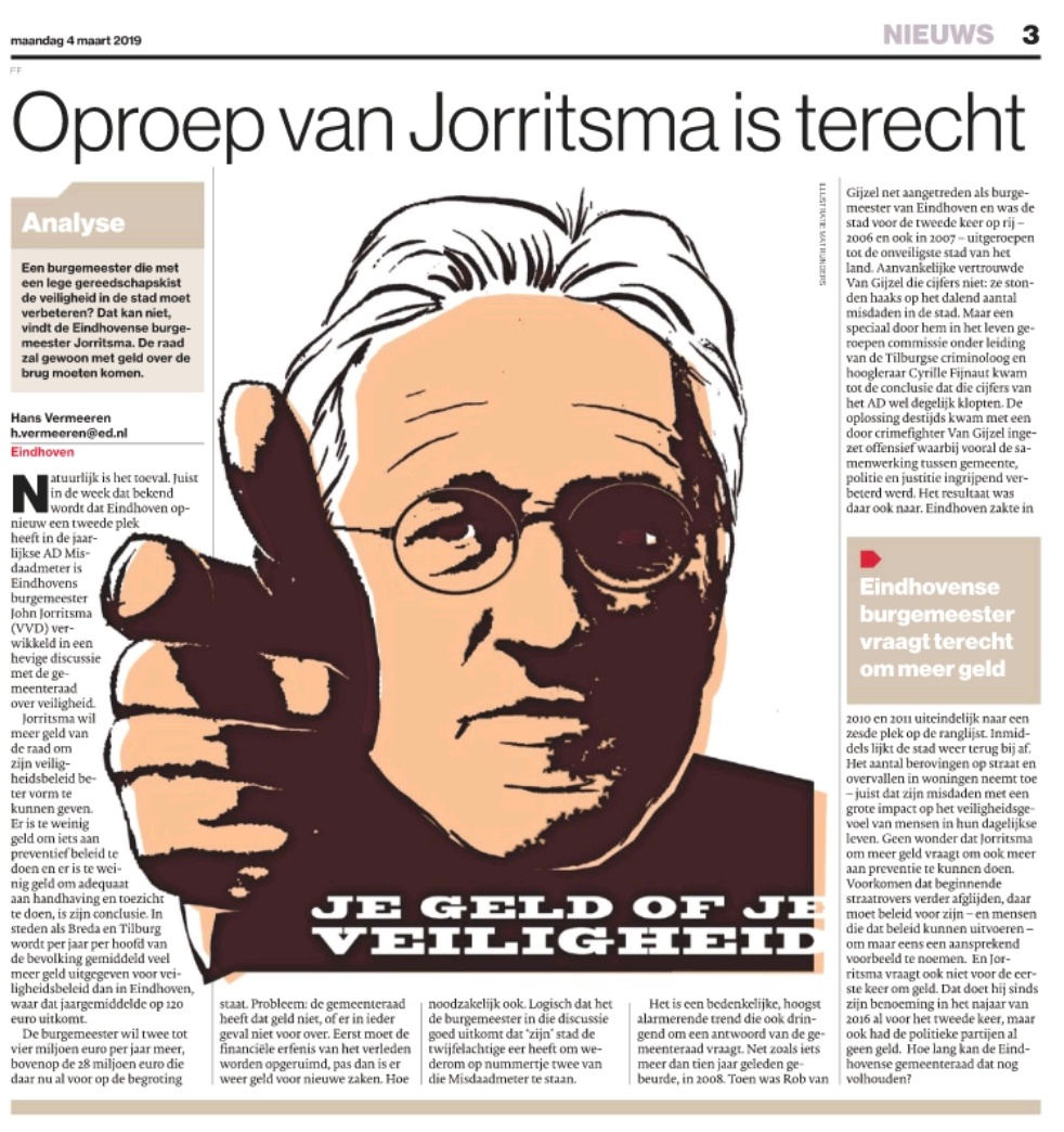Uitgerekend in de week dat Eindhoven in de AD Misdaadmeter opnieuw op een tweede plaats staat, en daarmee de op-een-na onveiligste stad van Nederland is. Lees hier het hele verhaal.