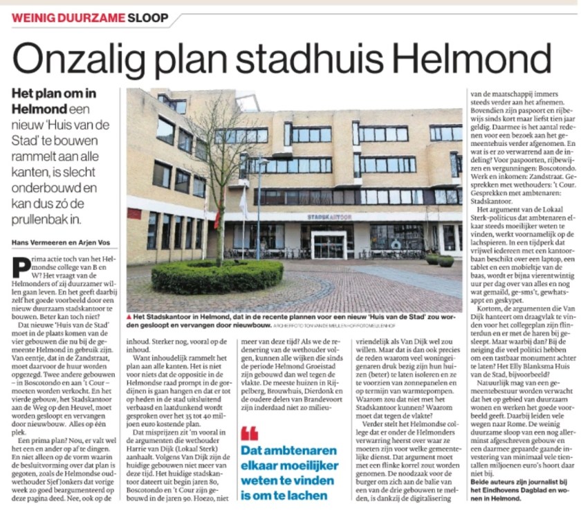 Samen met ED-collega Arjen Vos in de krant van vandaag wat olie op het vuur gegooid in de discussie over het Helmondse Huis van de Stad.