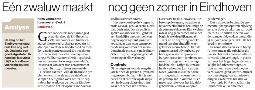 De financiële situatie van de gemeente is een stuk beter dan een jaar geleden. Maar is dat reden om de vlag te hijsen op het stadhuis? In de krant van vandaag betoog ik dat dit niet het geval is. Nog niet tenminste.