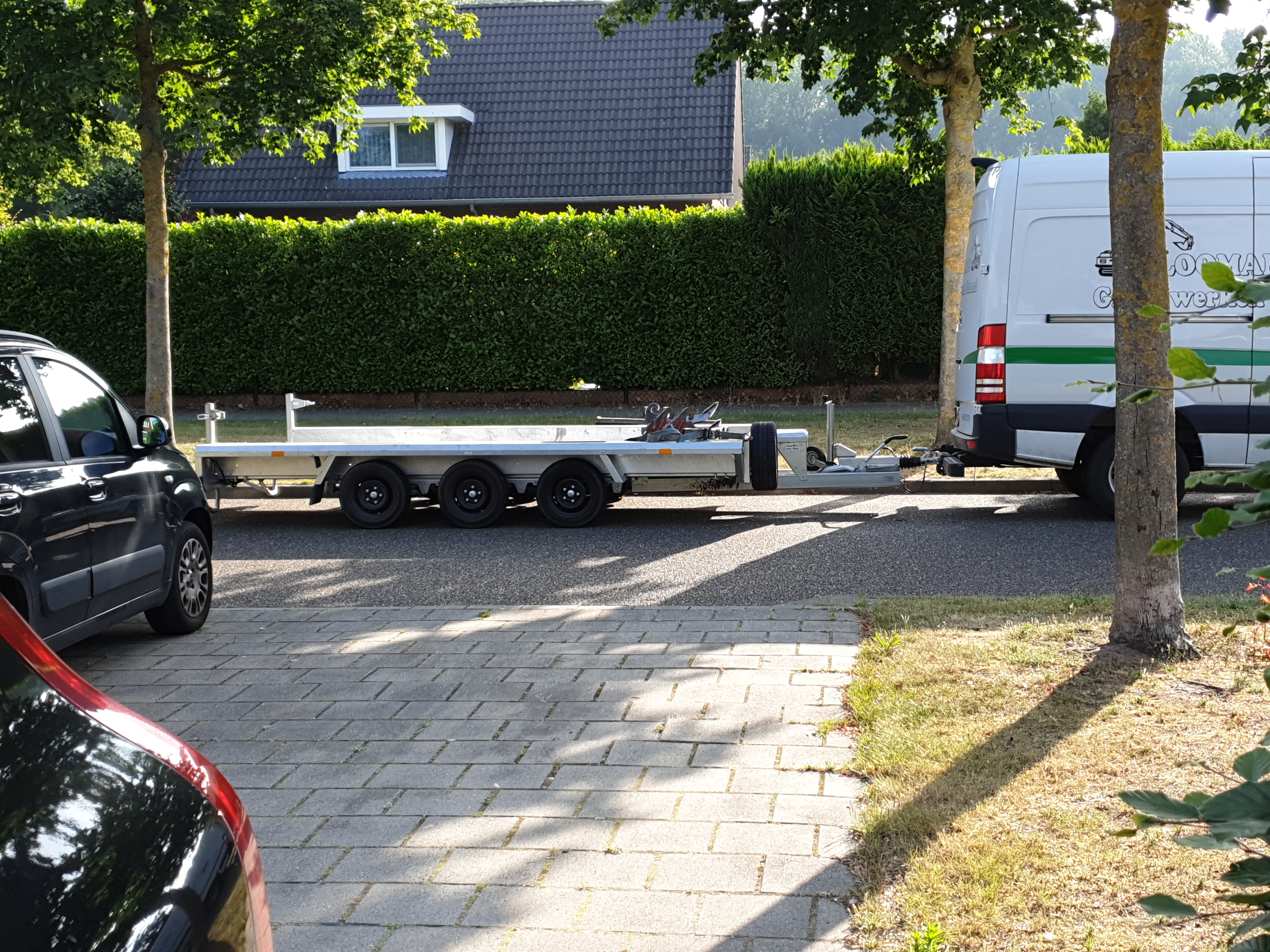 Deze chauffeur van de firma Loomans Grondwerken in Helmond is met lof geslaagd voor het examen ‘hoe blokkeer ik een uitrit zo effectief mogelijk’, dat kennelijk vanochtend plaats vond bij mijn huis.