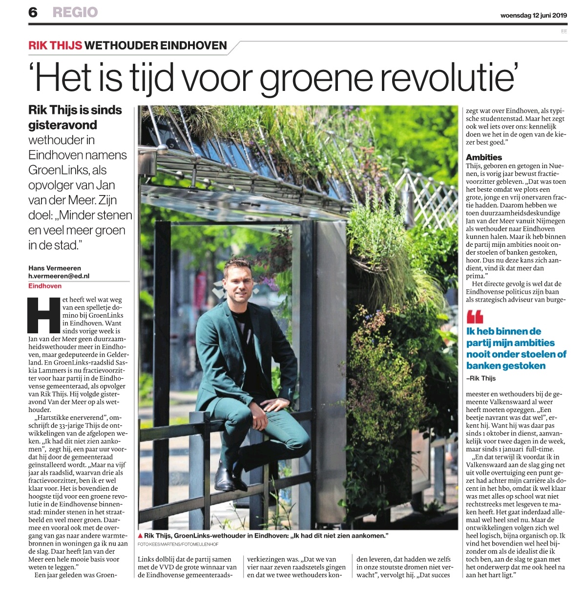 Doordat het Eindhovense nieuws gisteren en vandaag vooral in het teken stond van de Turkse terrorismeverdenking van SP-fractievoorzitter Murat Memis raakte de benoeming van GroenLinks’er Rik Thijs tot wethouder, als opvolger van de vertrokken Jan van Meer, bijna in de verdrukking. Bijna, want een paar uur voor zijn benoeming sprak ik hem uitgebreid.