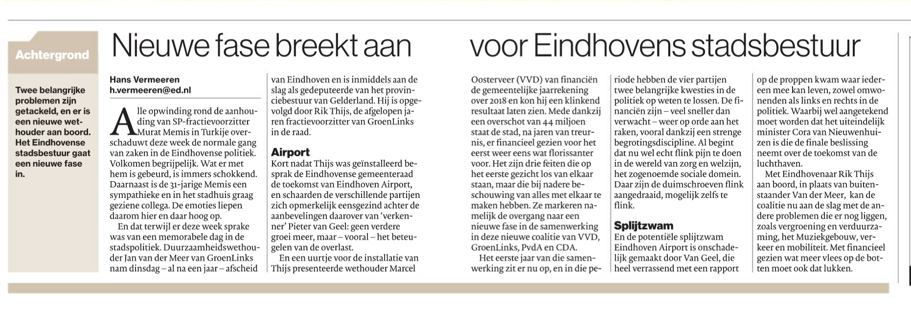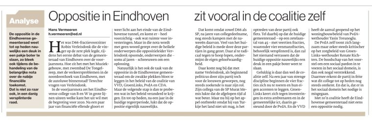 Tussen alle opwinding over de arrestatie van SP-fractievoorzitter Murat Memis in Turkije door ook even wat aandacht voor een nieuwe fase voor de Eindhovense coalitie in de gemeenteraad.