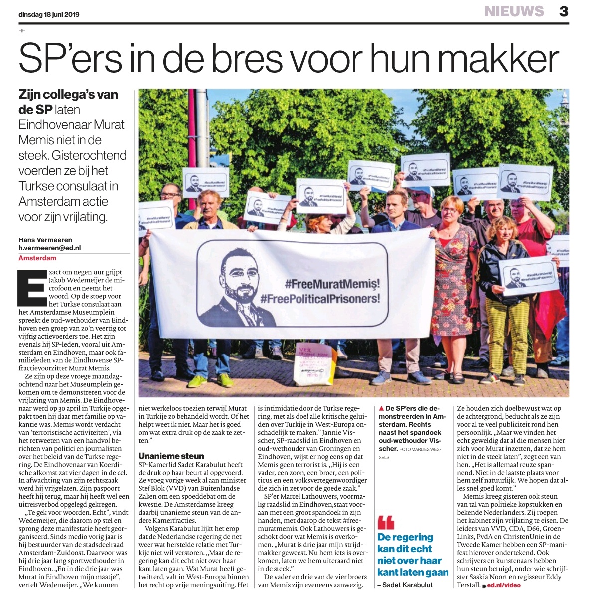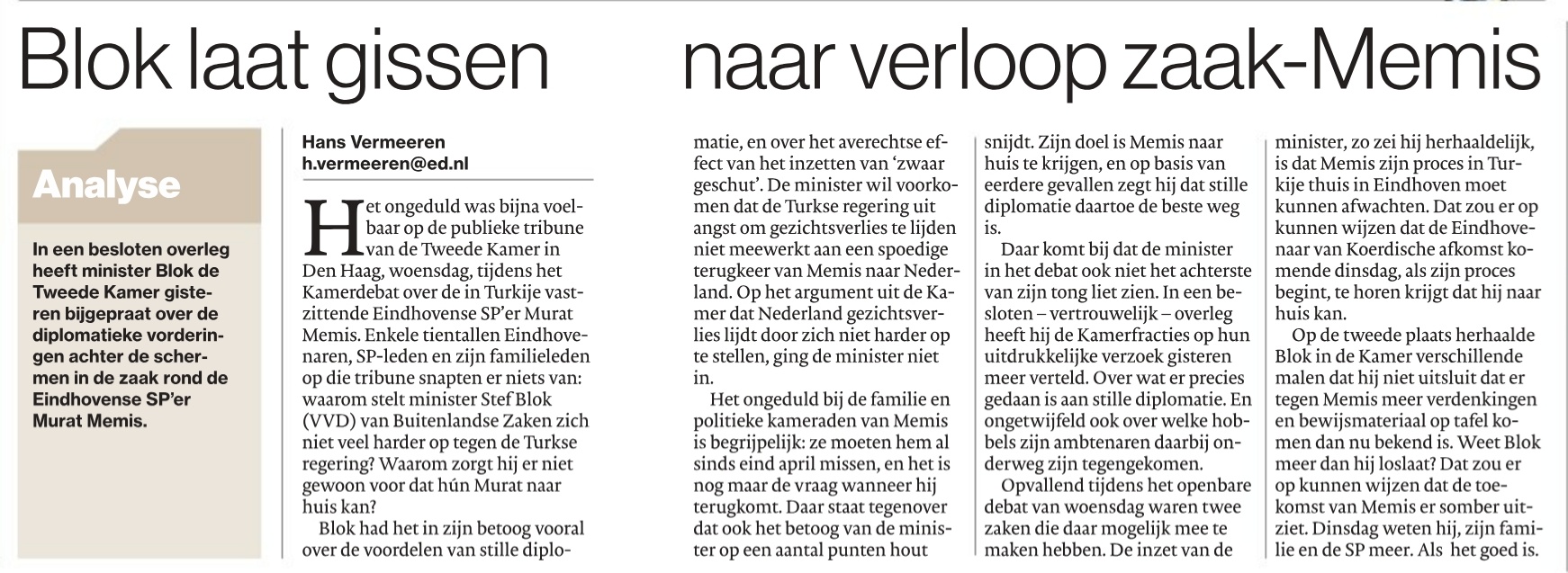 De zaak rond de Eindhovense SP-fractievoorzitter Murat Memis houdt niet alleen zijn familie, de SP en de Eindhovense gemeentepolitiek bezig. Ook de Tweede Kamer en het ministerie van Buitenlandse Zaken zijn er druk mee bezig.