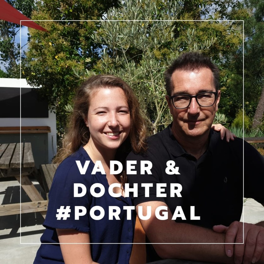 Familiefoto in Coïmbra, op het plein bij de uit de dertiende eeuw daterende universiteit van deze Portugese provinciehoofdstad. Gemaakt door het vijfde en dus ontbrekende lid van ons gezin.