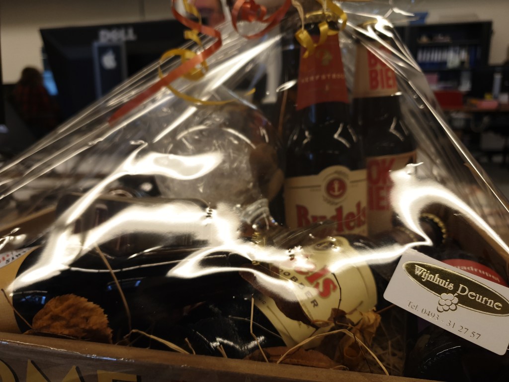 Dat is nog eens mooie binnenkomer: een cadeautje van een zeer vriendelijke collega waar ik een klusje voor opgeknapt heb en dat ik deze dinsdagmiddag op mijn bureau op de redactie aantref na een lang weekend. Graag gedaan, hoor! En om misverstanden te voorkomen: er zit géén wijn in dit pakket, alleen maar regiobier.