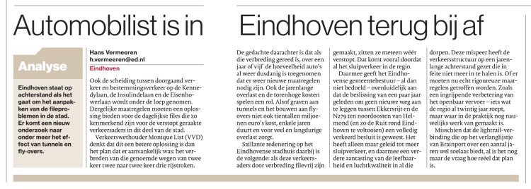 En niet alleen die vraag. Want loopt de politiek in Eindhoven eigenlijk niet al jaren achter de feiten aan als het gaat om om het oplossen van de verkeersproblemen? Dat is zelfs misschien wel de allerbelangrijkste vraag.