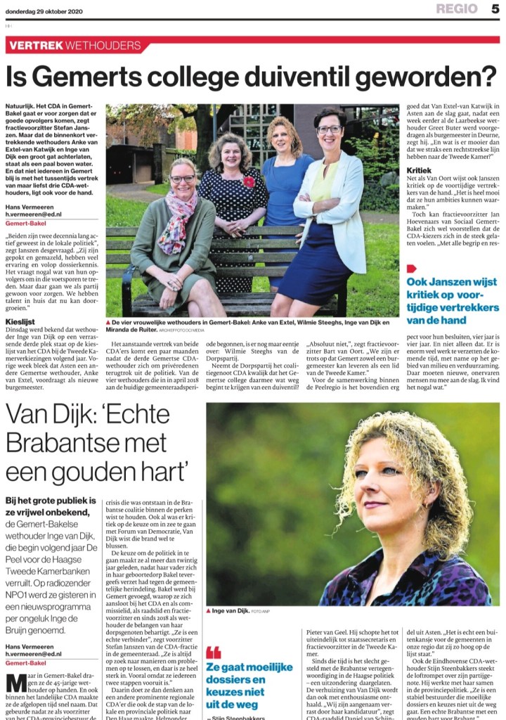 Vandaag in de krant nog wat meer over het aanstaande vertrek van twee wethouders in Gemert-Bakel. Hier en hier online te lezen trouwens.