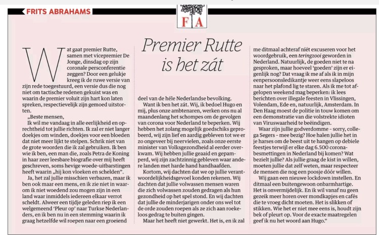 Uit de Volkskrant van gisteren nog. Maar ook vandaag actueel.