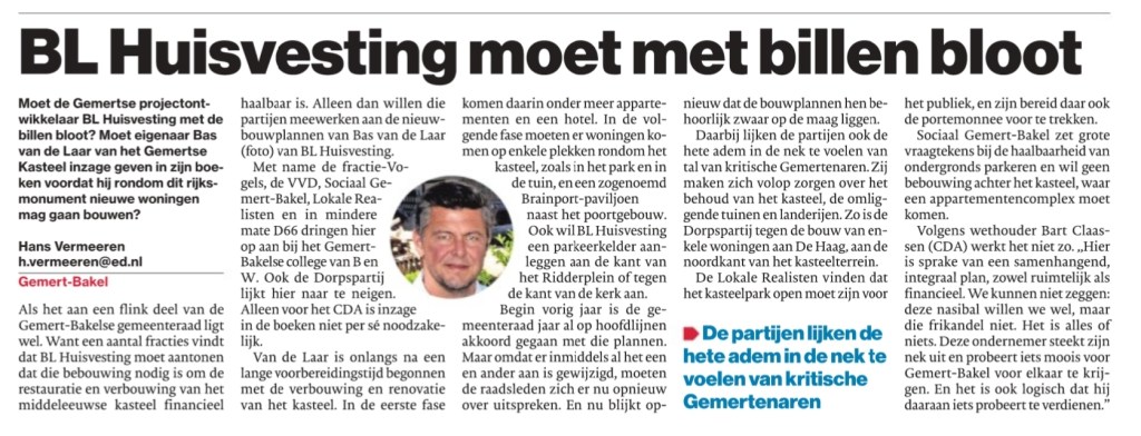 Dat komt nog wel, was toen het credo, dat regelen we allemaal nog wel. En zonder een oordeel uit te spreken over de vraag of er wel of niet gebouwd moet kunnen worden rondom het Kasteel: daar betaalt de gemeenteraad nu de rekening voor.