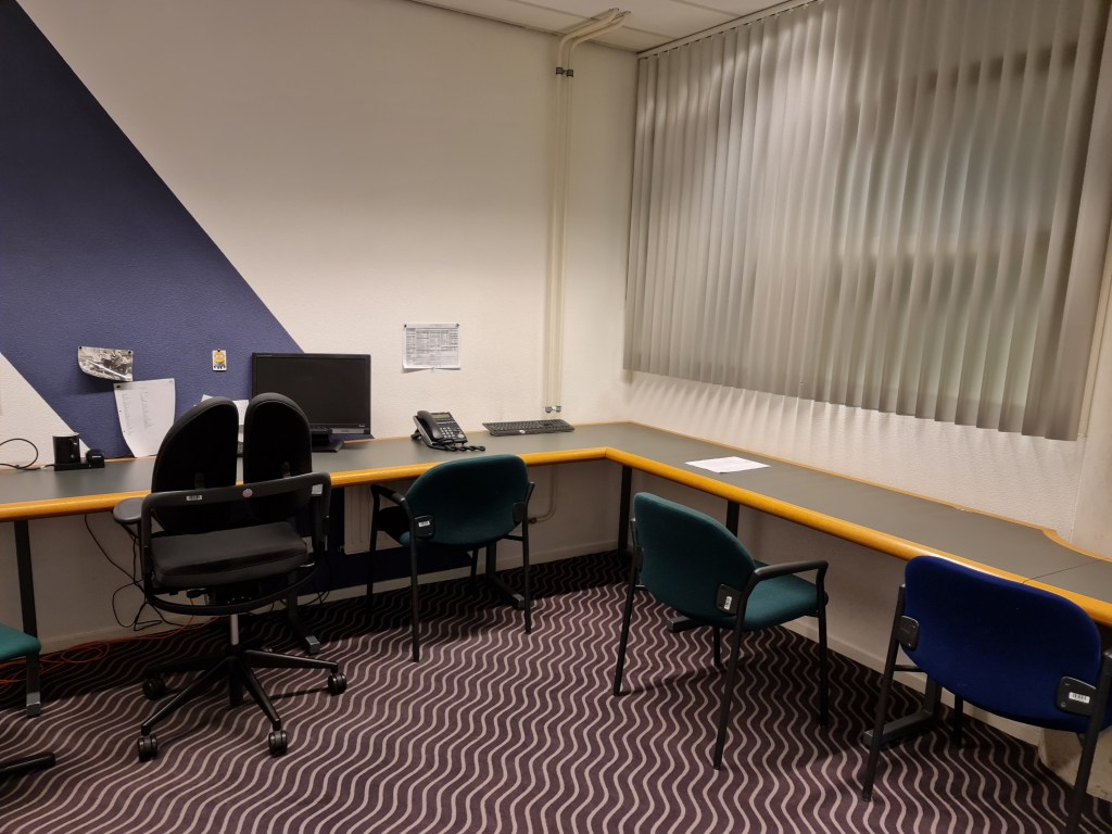 Dit is de perskamer. In de kelder van het Paleis van Justitie. Inderdaad, gezellig is anders. Maar er is in ieder geval een perskamer, dus mij hoor je daar verder niet over.