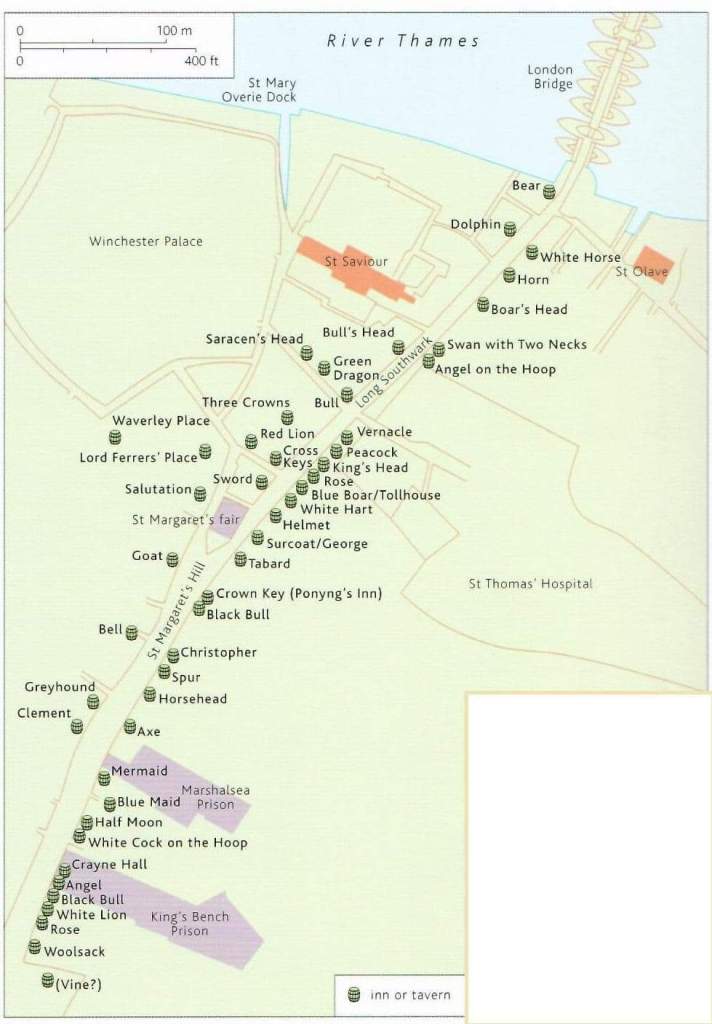 Een paar eeuwen geleden zaten er nog veel meer pubs in de Engelse hoofdstad, zag ik op een kaartje dat ik een paar dagen geleden op Twitter vond. Eén straat, vlakbij London Bridge, en het zag er zwart van de kroegen. Bijna deur voor deur.