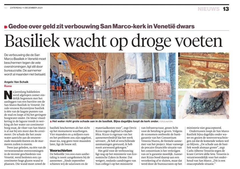 Het zal allemaal wel meevallen, dacht ik wel eens als ik een detective van Donna Leon aan het lezen was en ze weer eens uitgebreid inging op de corruptie en incompetentie van bestuurders in Venetië. Toen ik vanochtend dit verhaal las in onze krant dacht ik: niet dus.