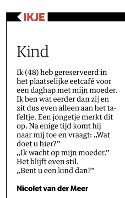 Je ziet de clou al van ver aankomen. Maar dat neemt niet weg dat ik er smakelijk om moest lachen, om dit Ikje in NRC.