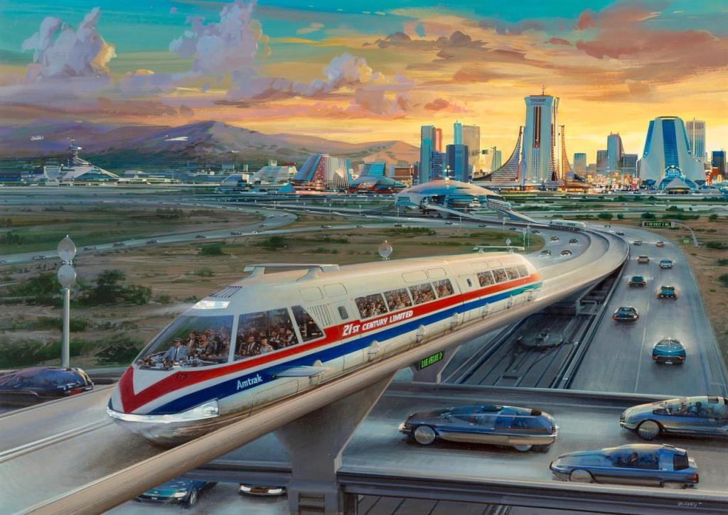 Mooi om te zien de mensen in de jaren vijftig en zestig dachten dat de toekomst er uit zou komen te zien. Gedeeltelijk klopte die visie natuurlijk wel, met veel auto’s en wolkenkrabbers (in grote steden). Maar van die soepel voorbij glijdende magneettreinen, die zo je toch nog maar behoorlijk weinig.