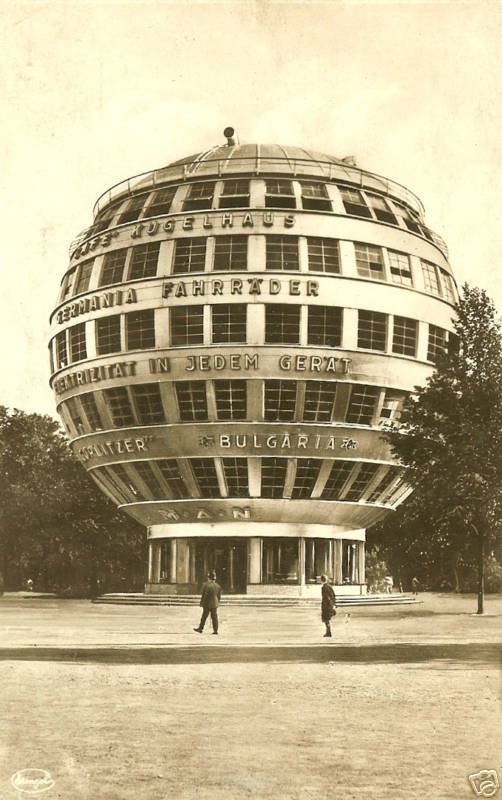 Een kleine zoektocht op internet levert echter op dat dit gebouw het Kugelhaus genoemd werd, in Dresden stond en in 1928 werd gebouw naar een ontwerp van Peter Birkenholz. Het is al in 1938 weer afgebroken door de nazi’s, die het prachtige gebouw als ‘on-Duits’ betitelden.