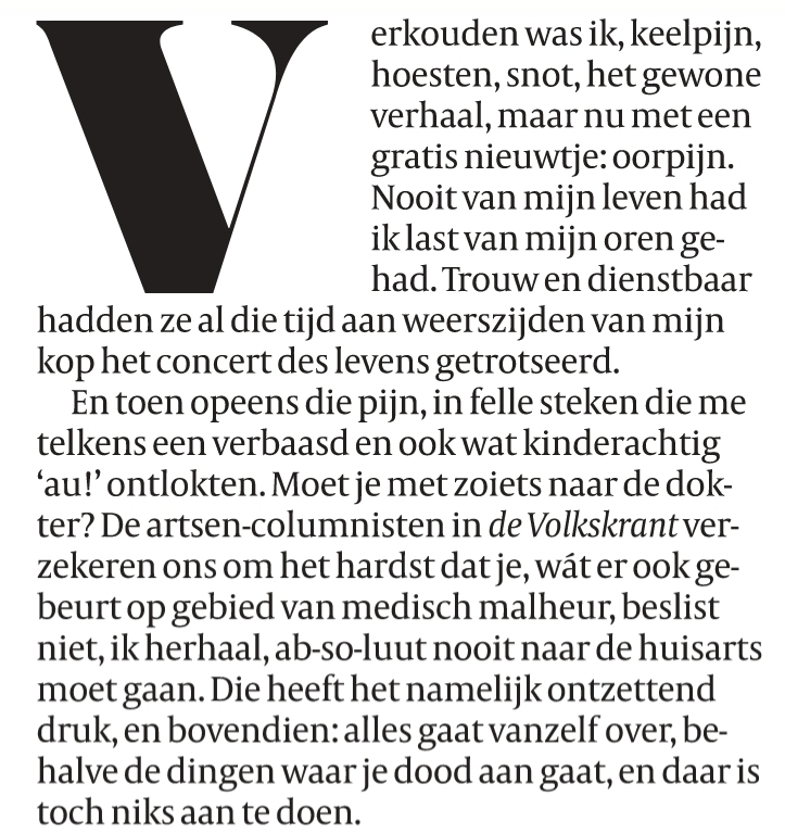 Ook Volkskrant-columniste Sylvia Witteman heeft het aan de stok met de huisarts. Net als Max Pam, een paar dagen geleden.