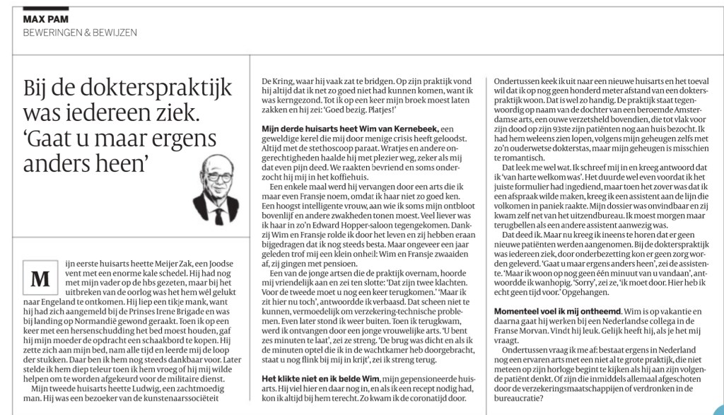 Wat een mooi geschreven en voor veel mensen herkenbare column van Max Pam, vandaag in NRC.