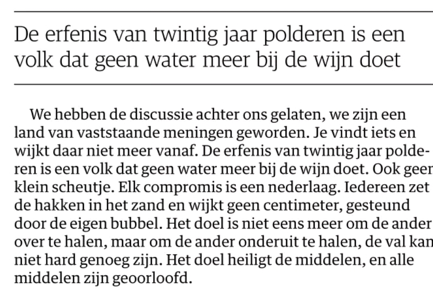 Mooi geformuleerd door Marcel van Roosmalen in NRC.