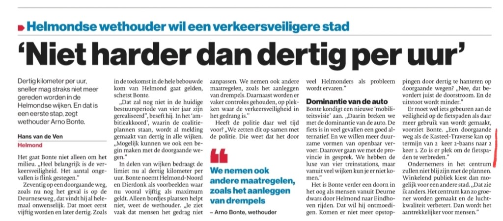 Het realiteitsgehalte van zijn uitspraken vandaag in de krant – twee rijstroken op de Kasteel-Traverse met een maximumsnelheid van dertig kilometer – is in ieder geval nul komma nul.