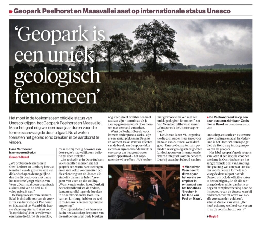 Dat herinnerde me eraan dat er in De Peel een organisatie achter de schermen aan het werk is om ook voor het gebied boven de Peelrandbreuk zo’n status binnen te halen.