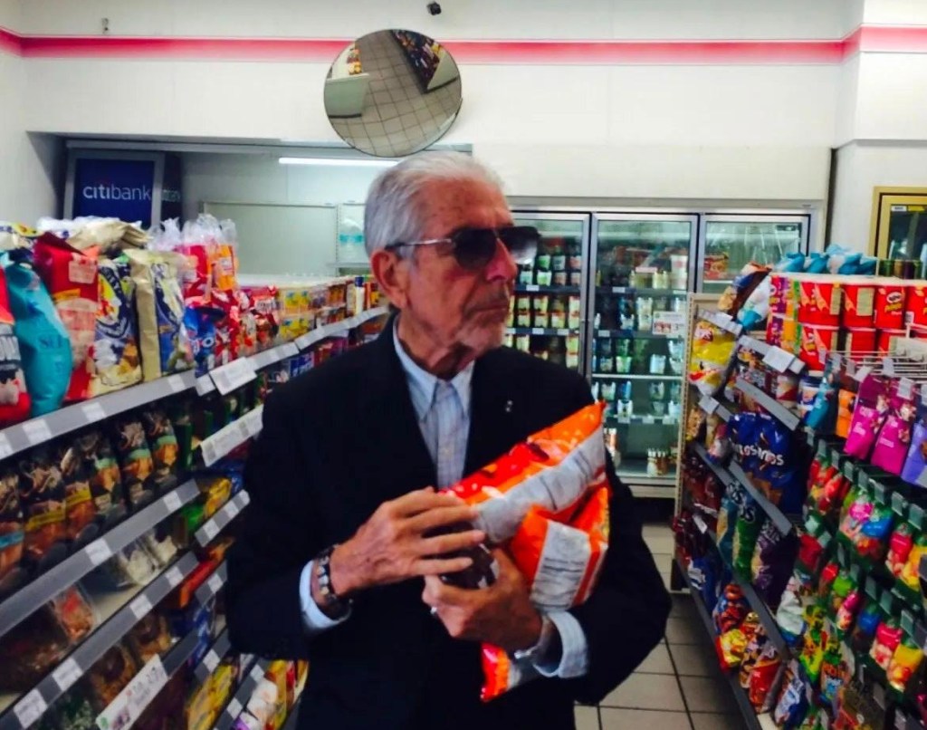 Dance me to de bodem van deze twee zakken chips. Ook een zanger van melancholieke liedjes heeft wel eens zin een snack, blijkt uit deze ongedateerde foto die ik tegenkwam op open riool Tumblr. Als het tenminste echt om de in 2016 overleden Leonard Cohen gaat.