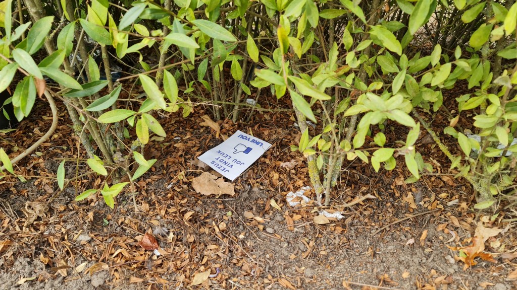 De liefde was niet geheel en al wederzijds geloof ik. Dit briefje lag hier voor de Cacaofabriek in Helmond in ieder geval bij de fietsenstalling onder de struiken.