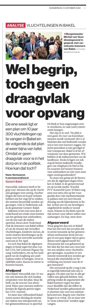De afgelopen week was er veel te doen over de mogelijk opvang van asielzoekers in Bakel. Een plan dat het niet lijkt te gaan halen. Hieronder maak ik de balans op van die discussie. Ook hier te lezen.