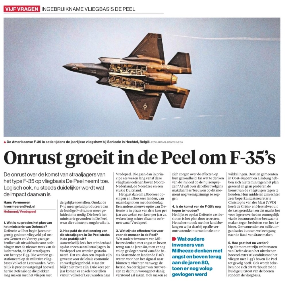 Gisteren een dagje bezig geweest met de proefvluchten met een F-35 van Defensie boven De Peel. Op de vliegbasis zelf zag het er fascinerend uit, dat moet ik zeggen. Maar in het buitengebied van Milheeze is de herrie niet te harden.