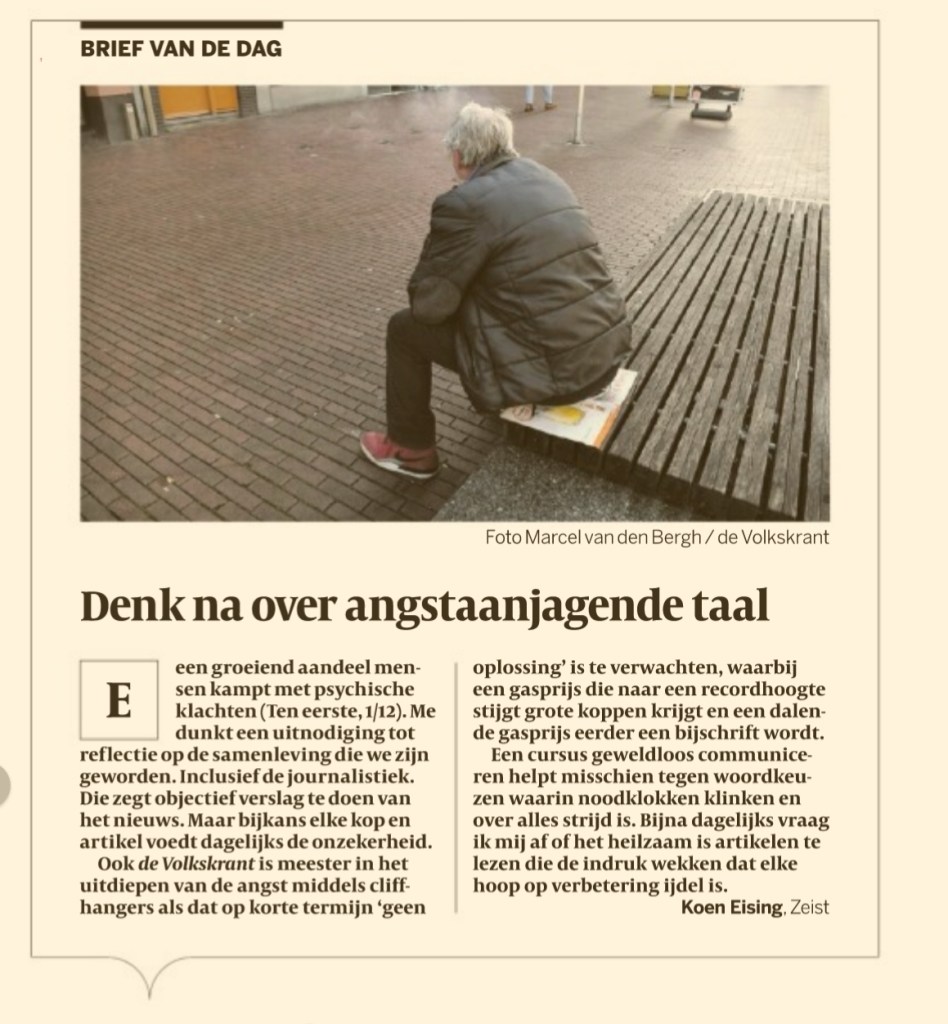 Deze ingezonden brief in de Volkskrant van vanochtend stemt inderdaad wel tot nadenken. Door het uitvergroten van meningsverschillen suggeren wij als journalisten maar al te vaak dat er sprake is van onoverbrugbare verschillen. Terwijl de werkelijkheid meestal ietwat genuanceerder in elkaar steekt.