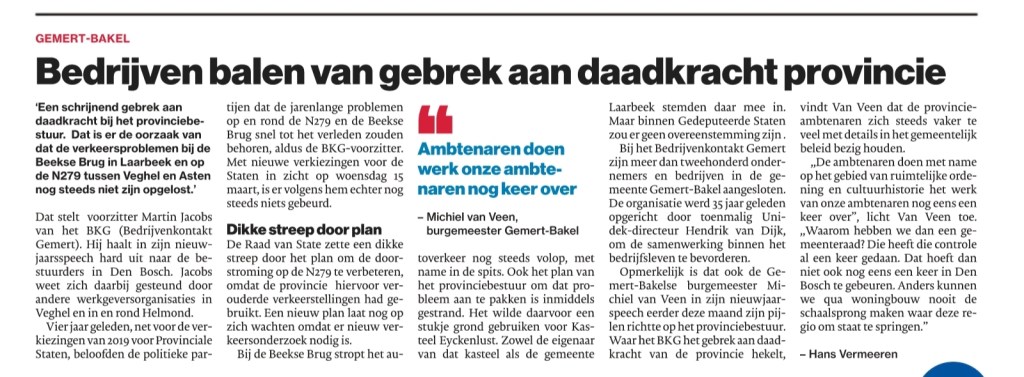 Heel af en toe denk ik wel eens dat ik zo ongeveer de enige ben in de regio-Helmond die zich druk maakt over het gebrek aan oplossingen voor de verkeersproblematiek rond de Beekse Brug in Beek en Donk en de N279 ten oosten van Helmond richting Veghel in het noorden en Asten in het zuiden.
