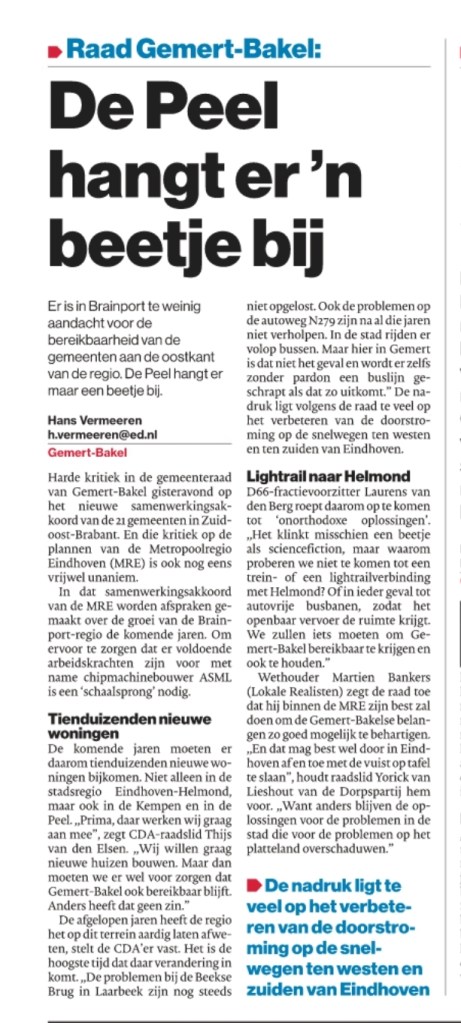 Is er sprake van het Calimero-syndroom? Of hebben de politici in de gemeenteraad van Gemert-Bakel een punt als ze zeggen dat er binnen de regio Zuidoost-Brabant veel aandacht is voor de problemen in de steden en maar bitter weinig voor die in de plattelandsgemeenten?