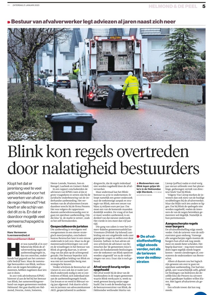 Al eerder schreef ik over de problemen bij afvalinzameleaar Blink, dat werkzaam is in de regio Helmond. Er blijkt nog veel meer mis te zijn, leert nieuwe informatie die de afgelopen week boven tafel kwam.