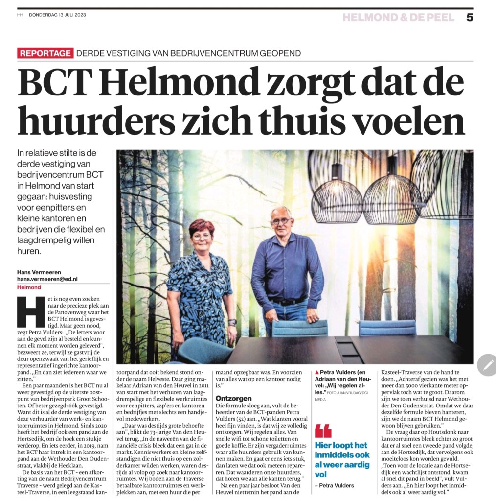 Twaalf jaar geleden maakte ik een verhaal met de mensen achter (toen nog) Bedrijvencentrum Traverse in Helmond. Inmiddels heet dit BCT Traverse, is het bedrijvencentrum verhuisd en werd onlangs een derde locatie geopend. Lees hier meer.