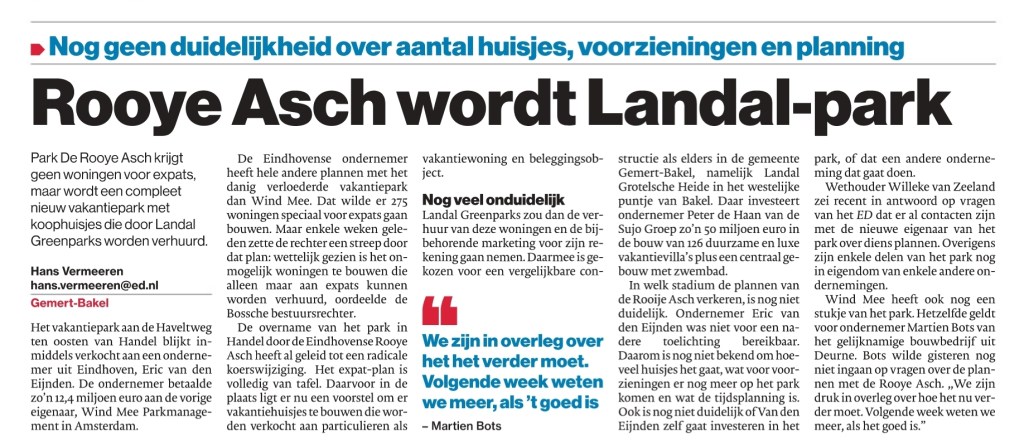 Vorige week was het nog een onderwerp in de tv-show van Arjen Lubach: de verroompottisering van Nederland. Vandaag melden we in onze krant dat ook de Rooye Asch in Handel er aan moet geloven. Dat wordt, zo zijn de plannen nu tenminste, ook een Landalpark. Hier de complete versie.
