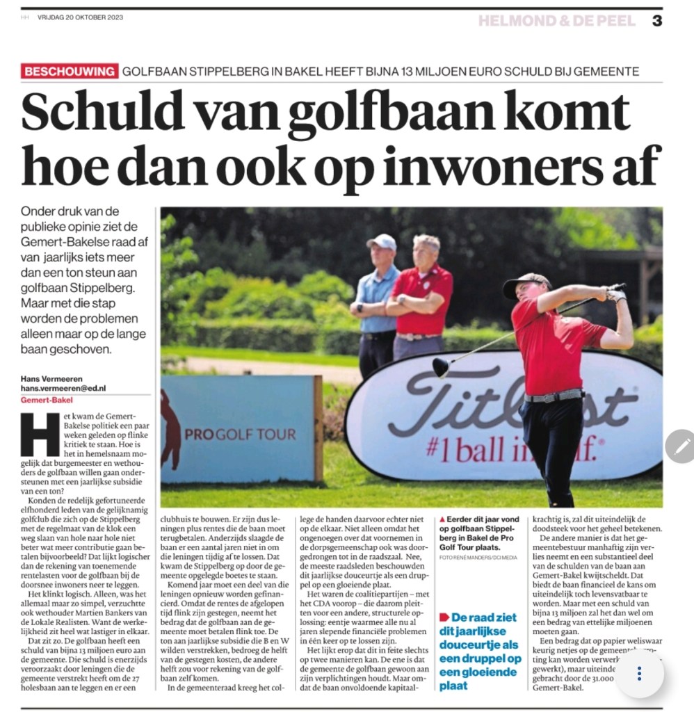 De financiële perikelen rond golfbaan de Stippelberg in Bakel houden de gemoederen in Gemert-Bakel flink bezig.