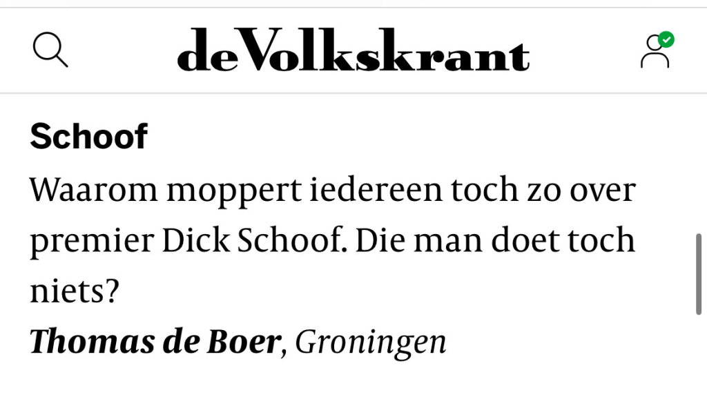 Briljante ingezonden brief, vandaag in de Volkskrant.