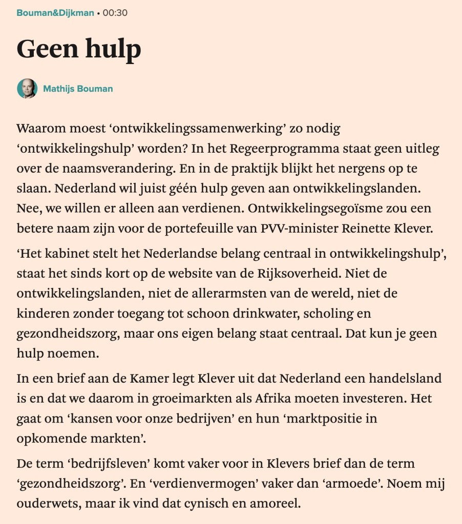 Interessante columns in het FD van journalist en econoom Mathijs Bouman, de laatste tijd. Ook deze weer: spijker op de kop.